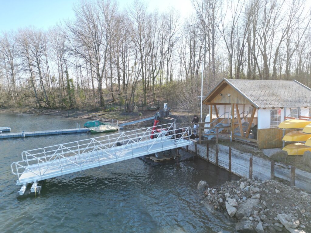 In Zusammenarbeit mit der Fa.Duwe & Partner GmbH aus Waldeck haben wir für den Verein für Barrierefreies Segeln in (50354) Hürth die neue Zugangsrampe geliefert. Durch diesen neuen Zugang wird ein gefahrloses begehen bzw. befahren der vorgelagerten Steganlage ermöglicht.